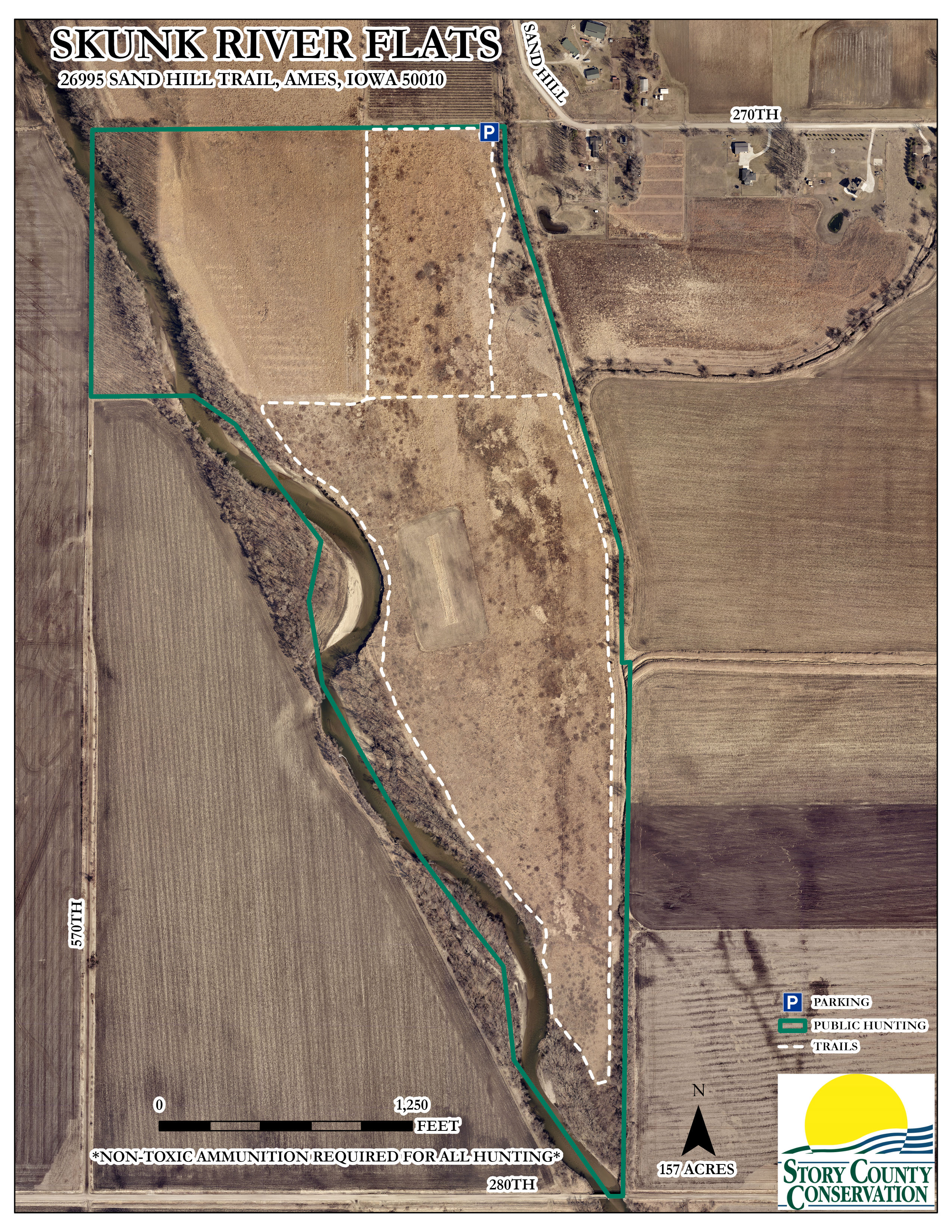 The Skunk River Flats is a 117-acre public hunting area owned by the Iowa DNR but managed by Story County Conservation (SCC). It was purchased through the Natural Resource Conservation Services wetlands program.